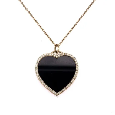 Jet Gemstone Diamond Heart Pendant